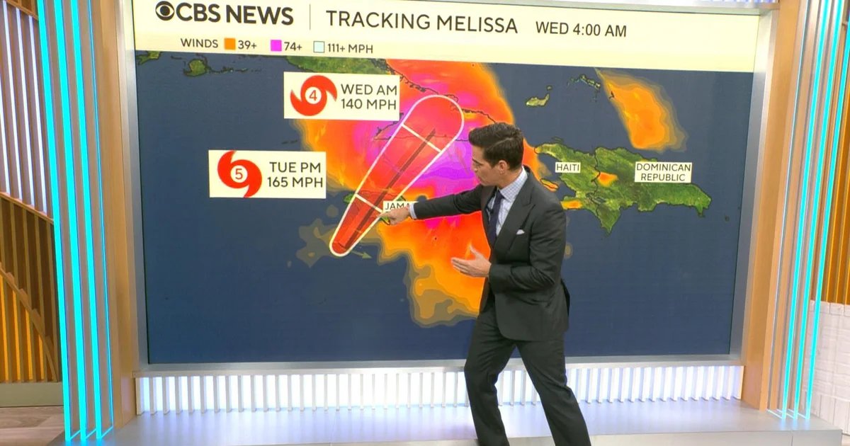 হারিকেন মেলিসা: ক্যারিবিয়ানে জ্যামাইকার দিকে ধীর গতিতে অগ্রসর, ট্র্যাকিং করছে CBS News – CBS News CBS News। আবহাওয়াবিদ রব মার্সিয়ানো হারিকেন মেলিসার গতিপথ অনুসরণ করছেন, কারণ এটি ধীরে ধীরে জ্যামাইকার দিকে অগ্রসর হচ্ছে (ক্যাটাগরি ৫ ঝড়)।