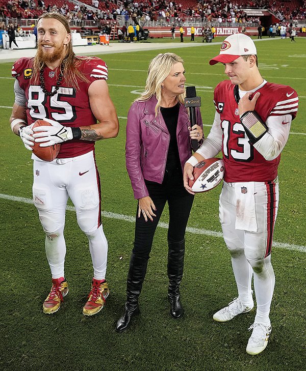এপি ফাইলের ফটো – সান ফ্রান্সিসকো 49ers টাইট এন্ড জর্জ কিটল (85) এবং কোয়ার্টারব্যাক ব্রুক পুরী (13) মেলিসা স্টার্কের দ্বারা সাক্ষাত্কার নিয়েছে 27 অক্টোবর, 2024 -এ, ক্যালিফোর্নিয়ায় ডালাস কাউবয়ের বিপক্ষে একটি এনএফএল ফুটবল খেলার পরে।
