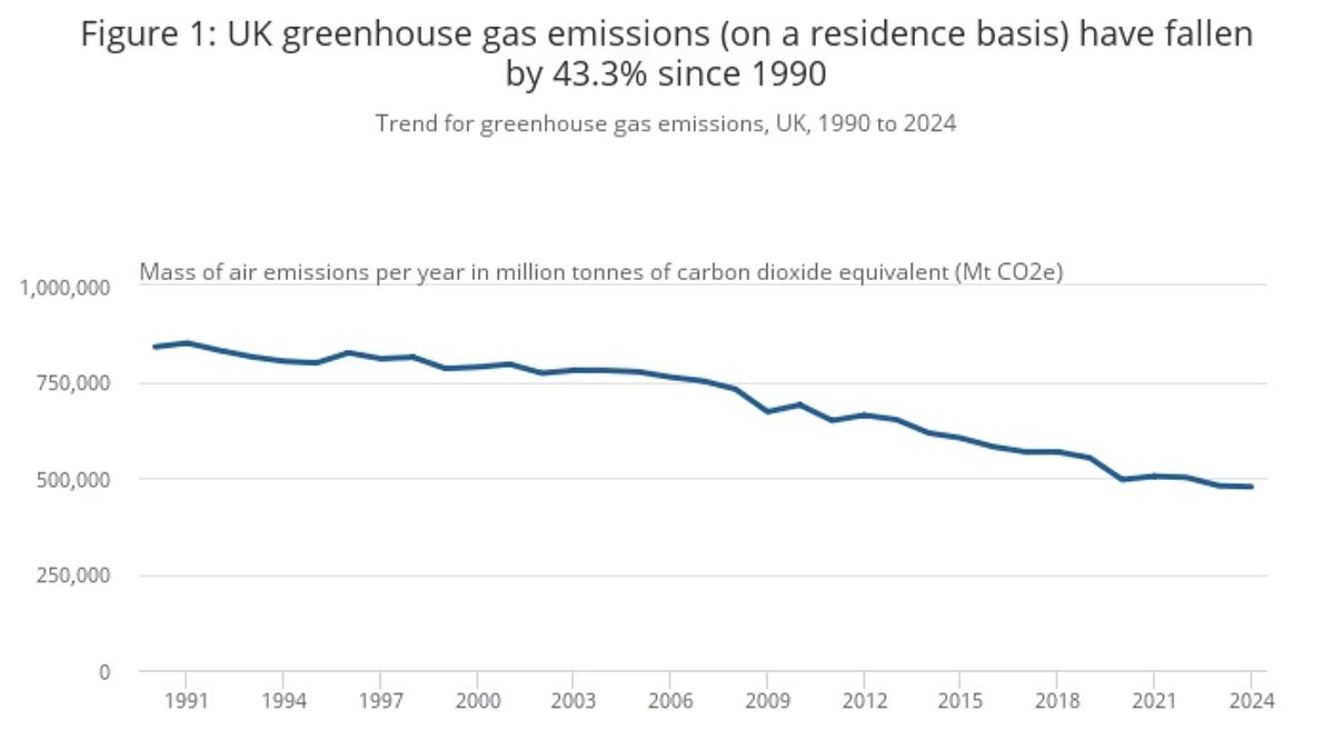ইউকে গ্রিনহাউস গ্যাস নির্গমন 1990 সাল থেকে 43.3% কমেছে, প্রতিশ্রুতিশীল বিশ্লেষণ দেখায়