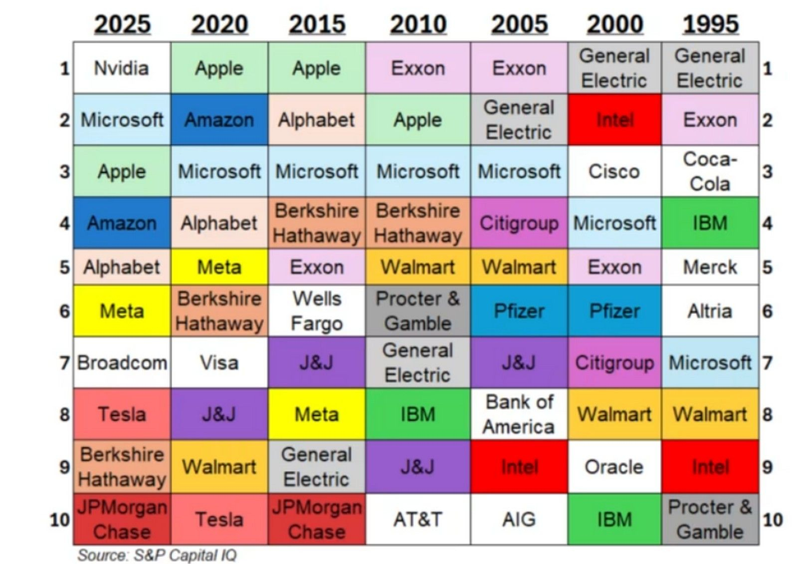 সময়ের সাথে শীর্ষ 10 সংস্থার রচনা কীভাবে (বা না) পরিবর্তিত হয়েছে (বা না) তা বিবেচনা করার মতো।