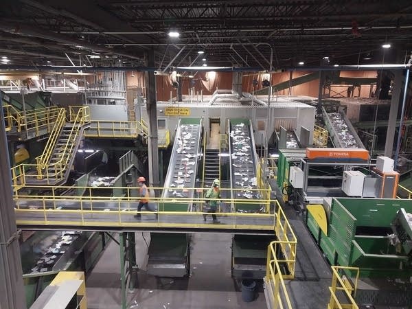 Twin Cities’ main regional recycling plant has completed a $23 million renovation to increase capacity, as the state aims to recycle more and dispose of less. Troy Hanson, WM’s director of post-collection operations, showed off the recently updated plant. The 15-year-old facility — just off Broadway in northeast Minneapolis — was due for improvements, Hanson said. “The population’s growing, recycling is becoming more popular — we’re going to need more capacity,” Hanson said. Improvements include new AI-powered sorting technology, instead of some manual sorting. Separating different materials is a crucial step in the process – missorted items can send waste to landfills. Sorting needs to move fast. The WM plant in Minneapolis processes dozens of tons of recyclables each day, which are transported from Minnesota, the Dakotas, northern Iowa and western Wisconsin. Employees recycle Thursday at the Twin Cities WM recycling plant in Minneapolis. Estelle Timar Wilcox | MPR News The new artificial intelligence tools use cameras and laser scan content as they travel along the factory’s conveyor belts. They can differentiate between a polypropylene yogurt container and other plastics, for example, Hanson said that are often overlooked during the sorting process because it’s small. “With our older technology, they were difficult for them to pick,” Hanson said. “Now, we’re able to recognize those materials, pick those materials and ultimately, those materials are now being reused and recycled.” The plant upgrade is part of a national project to modernize factories across the country. Minnesota has set a goal to recycle 75 percent of waste in the Twin Cities metro area by 2030 — and 35 percent in the rest of the state. Estelle Timar Wilcox | MPR News Hanson said the rules for what to recycle have not changed. But he said it’s a good idea to double-check your city’s collection guidelines before throwing something away. “Always recycle cardboard, always recycle plastic, always recycle aluminum cans,” Hanson said. “Make sure your containers are clean and dry.” He said people should avoid recycling plastic bags and batteries. These need to go to separate facilities and can cause problems at the recycling plant if they get caught in the conveyor belts. The plant is now able to process about 240,000 tons of recyclables per year, up from its old capacity of 150,000 tons per year. It’s open for tours, including a newly renovated education center.