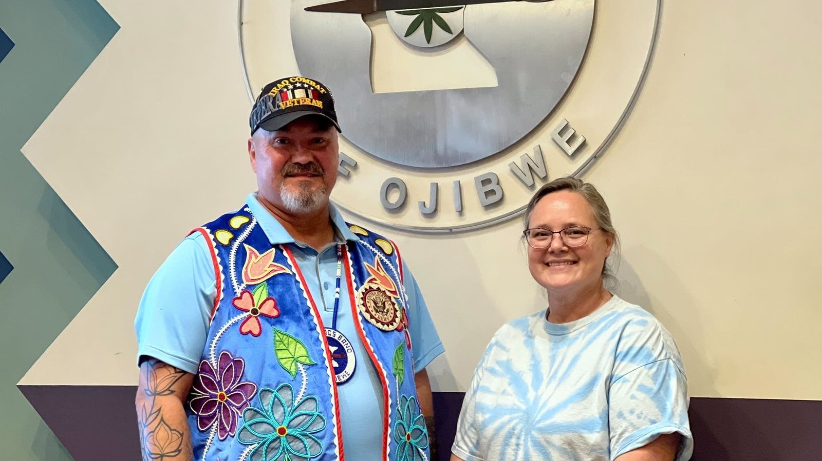 Veterans Anthony Pike (left) and Billie DeFoe (right) pose together for a photo at veterans resource fair in Mille Lacs Grand Casino Events Center.