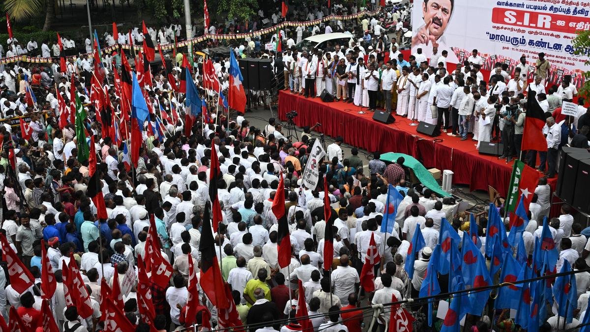 মঙ্গলবার ফোর্ট ময়দানে ভোটার তালিকার বিশেষ তীব্র পর্যালোচনা (এসআইআর) এর বিরুদ্ধে ডিএমকে এবং অন্যান্য সর্বভারতীয় জোট দলগুলি বিক্ষোভ করেছে৷ রাজ্যব্যাপী প্রতিবাদের অংশ হিসাবে, ডিএমকে এবং তার সহযোগীরা বিক্ষোভে অংশ নেয় এবং এসআইআর এবং ভারতের নির্বাচন কমিশনের বিরুদ্ধে স্লোগান দেয়। গণতন্ত্র। ভোটাধিকার ভারতীয় গণতন্ত্রের ভিত্তি। ডিএমকে সরাসরি মোকাবিলা করতে না পেরে বিজেপি এসআইআর দায়ের করেছে। এসআইআর ঘোষণার পর, 6.36 কোটি ভোটার তাদের ভোটাধিকার হারিয়েছেন এবং শুধুমাত্র নিবন্ধনের পরেই ভোটাররা আবার ভোটাধিকার পাবেন। SIR ফর্মগুলি সাধারণ মানুষের কাছে বোধগম্য নয়। এক মাসে কিভাবে শেষ করা যায়। তিনি জিজ্ঞাসা করেছিলেন যে অঙ্গনওয়াড়ি কেন্দ্রের কর্মীরা এবং ভিএও সহকারীরা এসআইআর-এর কাজে জড়িত এবং তারা কীভাবে এক মাসে কাজগুলি শেষ করতে পারে।