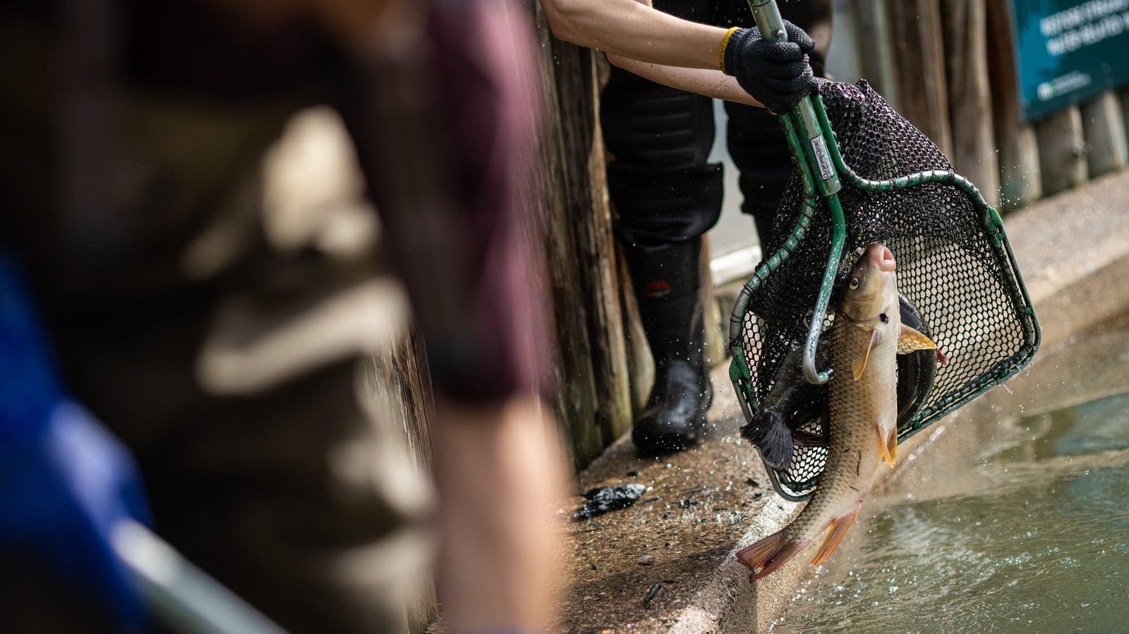 কয়েক ডজন ডিএনআর কর্মী ট্রাকের পিঠে বায়ুযুক্ত ট্যাঙ্কগুলি থেকে মাছগুলি স্কুপ করতে এবং পুকুরে প্রবেশ করতে সহায়তা করেছিল। ফার্টনার বলেছিলেন যে এটি অনেক লোক লাগে যে ডিএনআর প্রায়শই তার মাছের সাথে সম্পর্কিত র্যাঙ্কগুলি থেকে স্বেচ্ছাসেবীদের নিয়োগ দেয়-আউটরিচ ইন্টার্ন এবং বনজ কর্মীরা ওয়াডার দান করেছিলেন এবং মাছটি ঝাঁকুনিতে সহায়তা করেছিলেন।